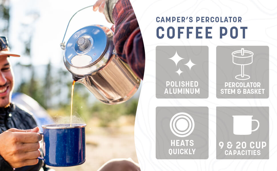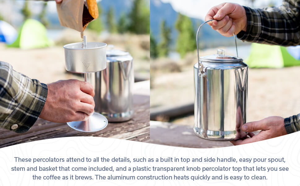 একটি ক্লাসিক পারকোলেটর ব্রিউইং পদ্ধতির সাথে ডিজাইন করা, এই কেটলিটি আপনার কফি গ্রাউন্ড থেকে সমৃদ্ধ গন্ধ বের করে এবং একটি সমান ব্রিউং তাপমাত্রা বজায় রাখে। সিস্টেমটি নিশ্চিত করে যে প্রতিটি কাপ সুগন্ধযুক্ত এবং পূর্ণাঙ্গ কফি সরবরাহ করে, যা ভোরবেলা ক্যাম্পসাইট বা সপ্তাহান্তে যাওয়ার জন্য উপযুক্ত।