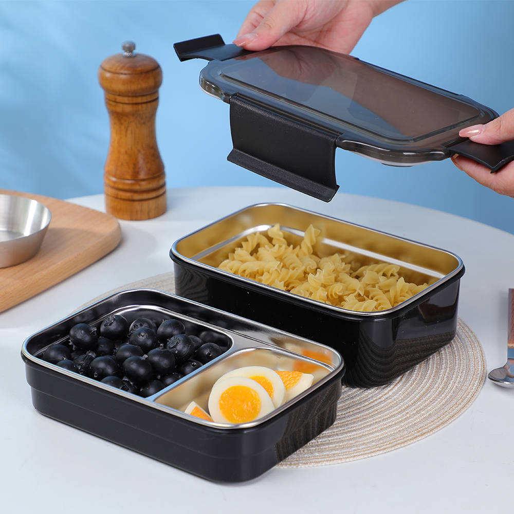 Ullmhú Béilí Eagraithe : Ligeann dhá shraith na príomh-miasa, taobhanna agus sneaiceanna a scaradh, béilí a choinneáil úr agus eagraithe go néata le haghaidh aiste chothrom bia.