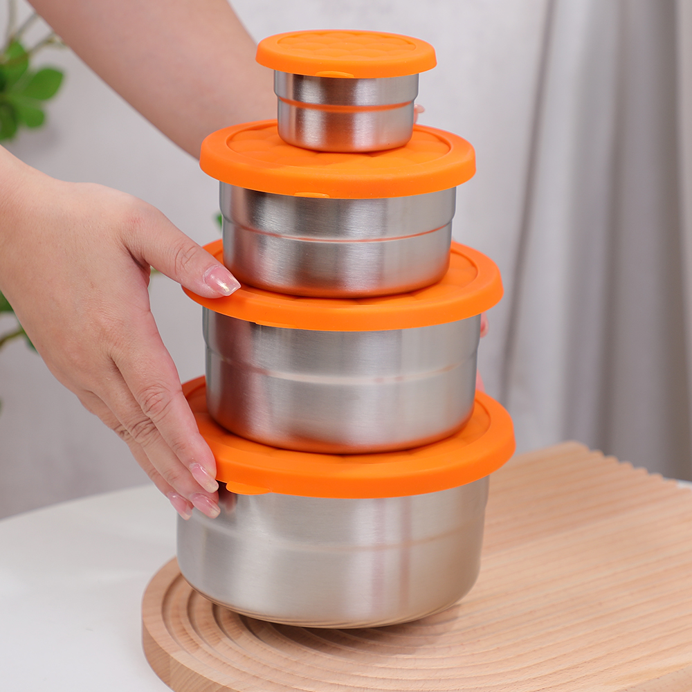स्थान-कुशल गोल डिज़ाइन : स्टैकेबल और नेस्टेबल, गोलाकार आकार अलमारियाँ और बैग में भंडारण स्थान को अधिकतम करता है, गोल या अनियमित आकार के खाद्य पदार्थों को समायोजित करते समय अव्यवस्था को कम करता है।