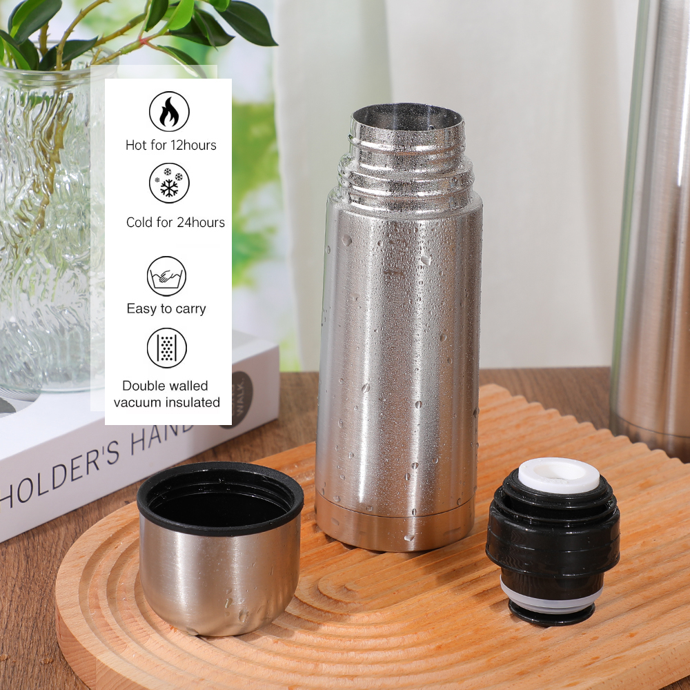 断熱ステンレススチール製ウォーターボトルは、大人のユーザーにとって実用的です。この構成は堅牢な SK Tritan 素材を使用しており、すべてのバリエーションのユニバーサルデザインに適合します。