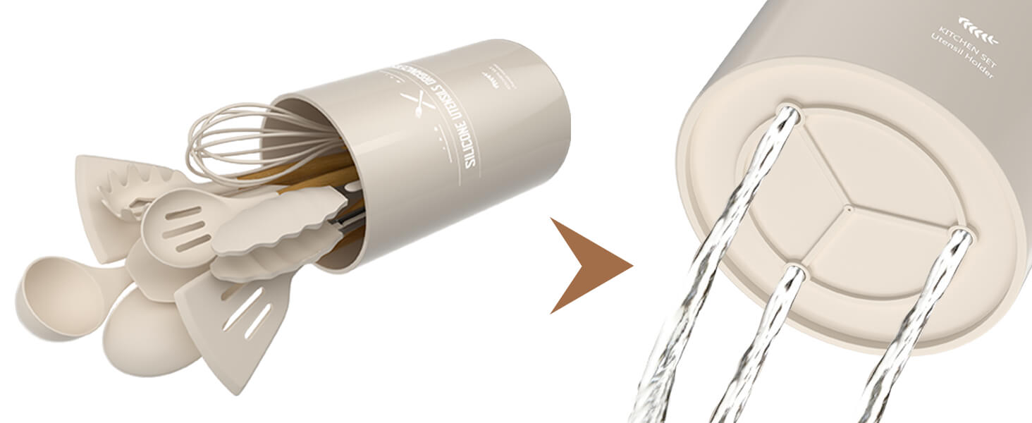 Чишћење силиконских кухињских додатака је једноставно. Можете их бацити у машину за прање судова и они ће изаћи чисте и свеже. Силикон је отпорнији на мрље боље од дрвета и не задржава мирисе. Уз редовну употребу, силиконски алати трају око 2 до 5 година у ужурбаној кухињи. Ако се бринете о њима, могу трајати још дуже.